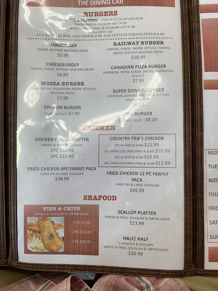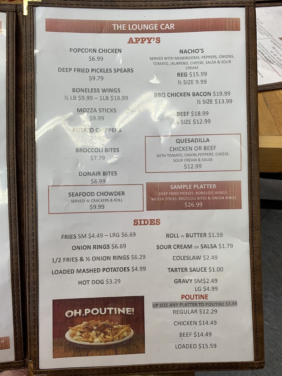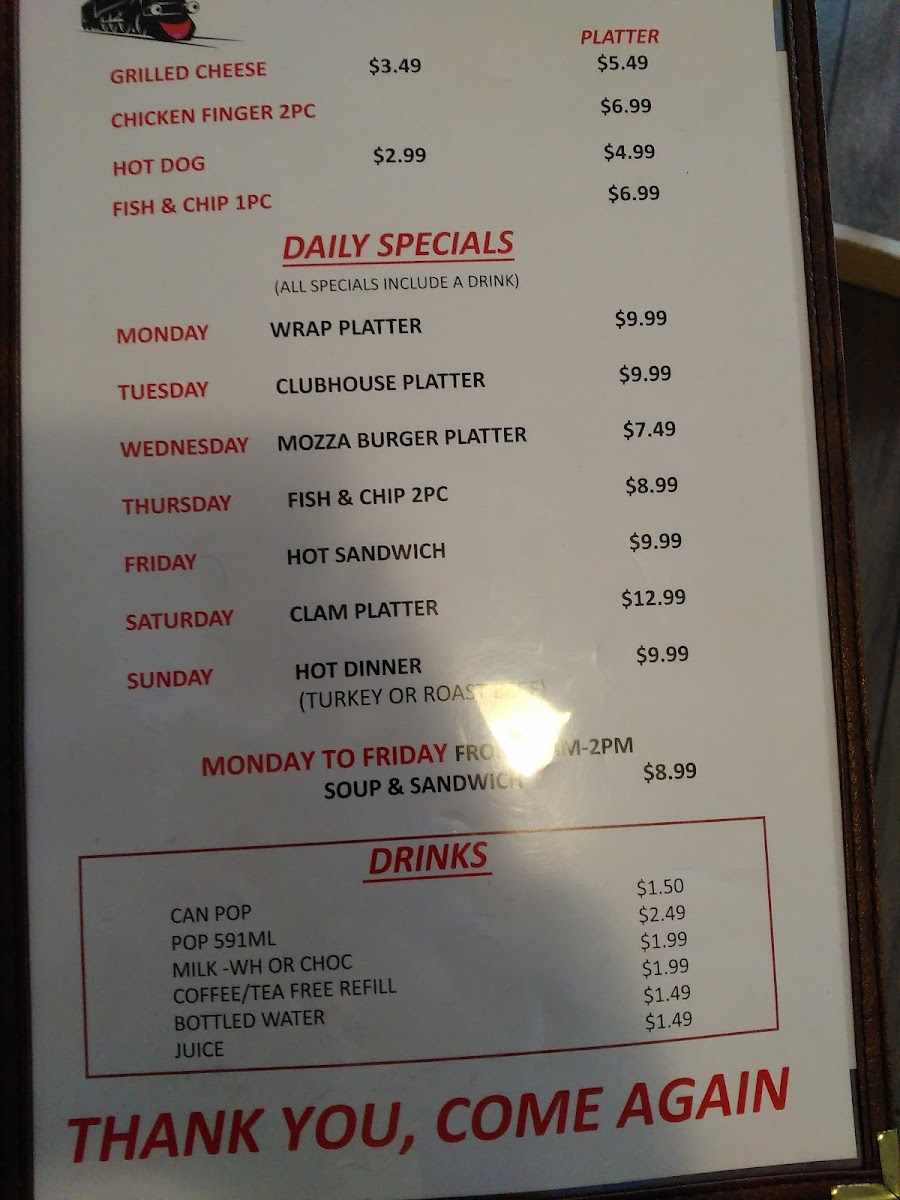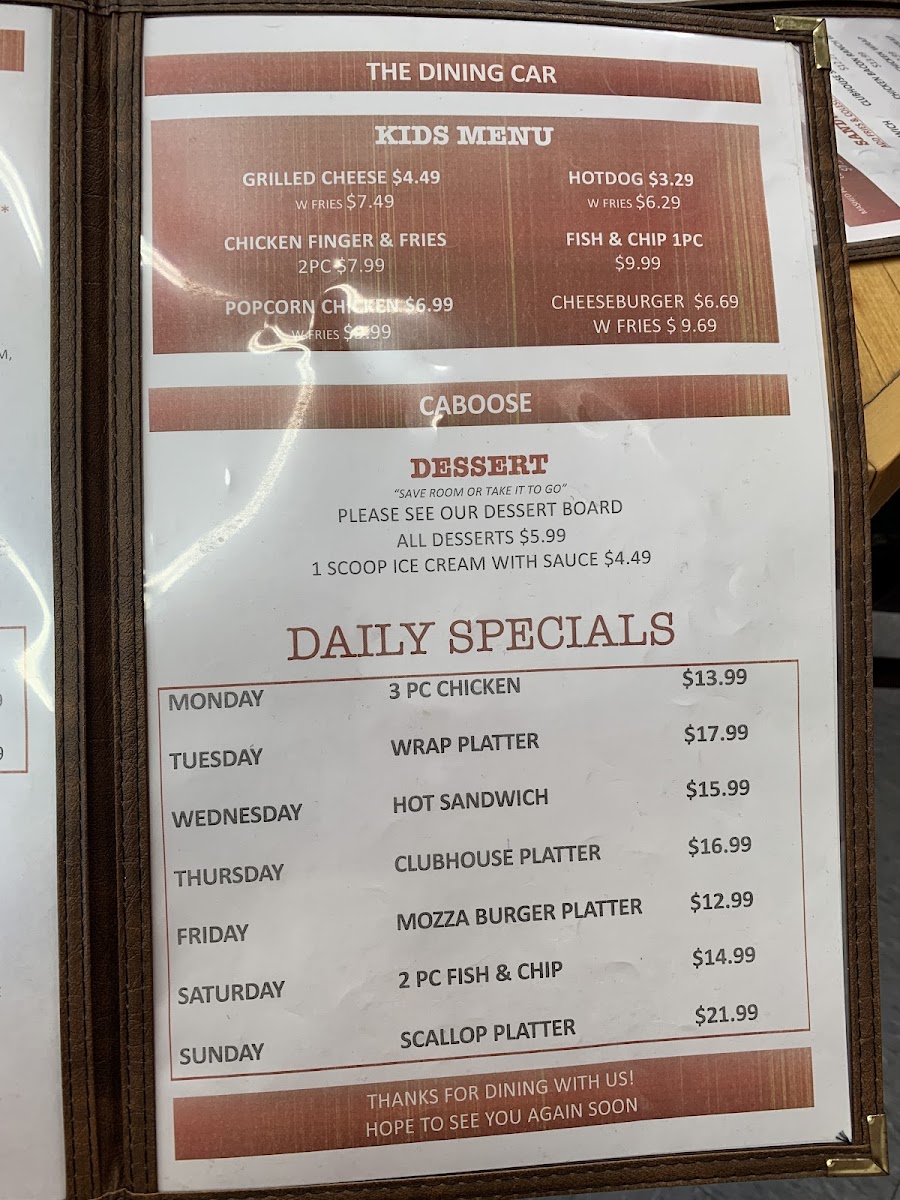 The Railway Diner offers a straightforward, hearty menu that feels right at home in its cozy, no-frills setting. Here, you’ll find classic Canadian comfort foods served in generous portions—ideal for a satisfying meal any time of day, whether you’re stopping in during a road trip or enjoying a relaxed lunch with friends.